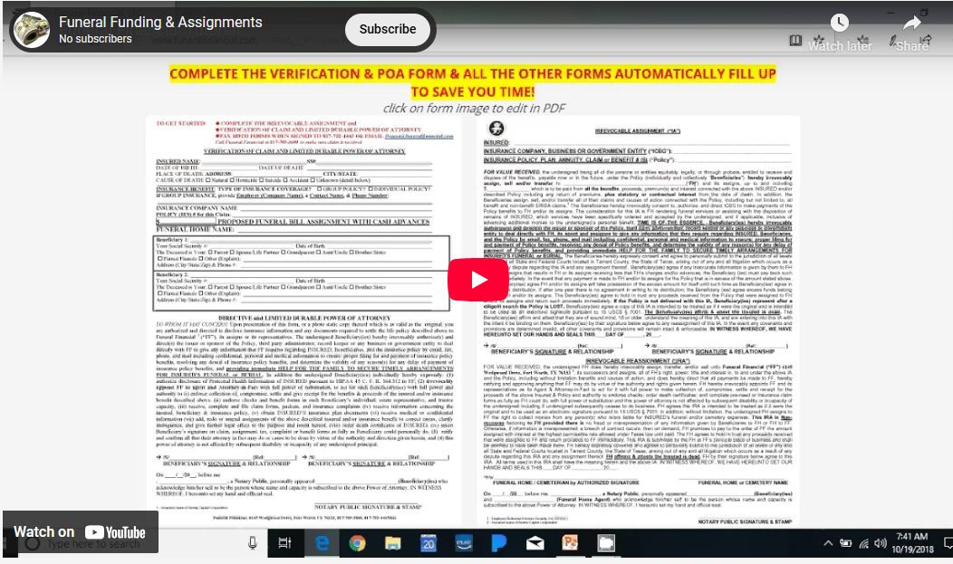 TRY FUNERAL FINANCIAL FOR YOUR NEXT INSURANCE ASSIGNMENT! No Chargebacks Except for Fraud! Your Claim is Paid in 48 Hours or Our Fee is Reduced by 1% Our Everyday Service Charge is 3% Plus an Administrative Fee